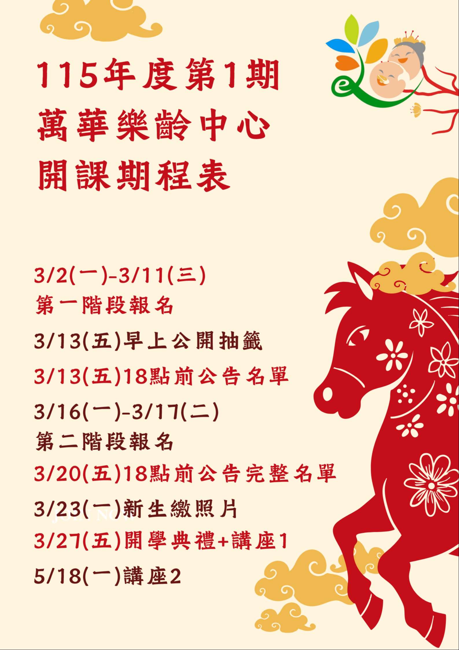 附件為臺北市萬華區樂齡學習中心115年度第1期招生簡章及期程表