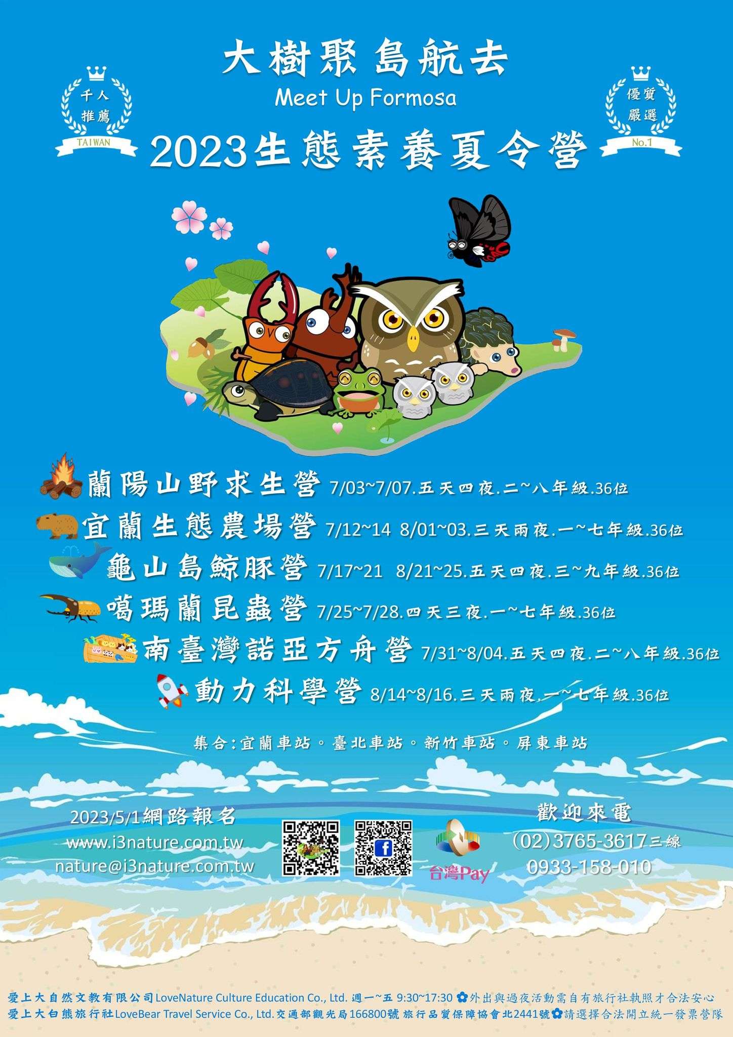 一、營隊課程5月1日開放網路報名,詳見網站:www.i3nature. com.tw。
