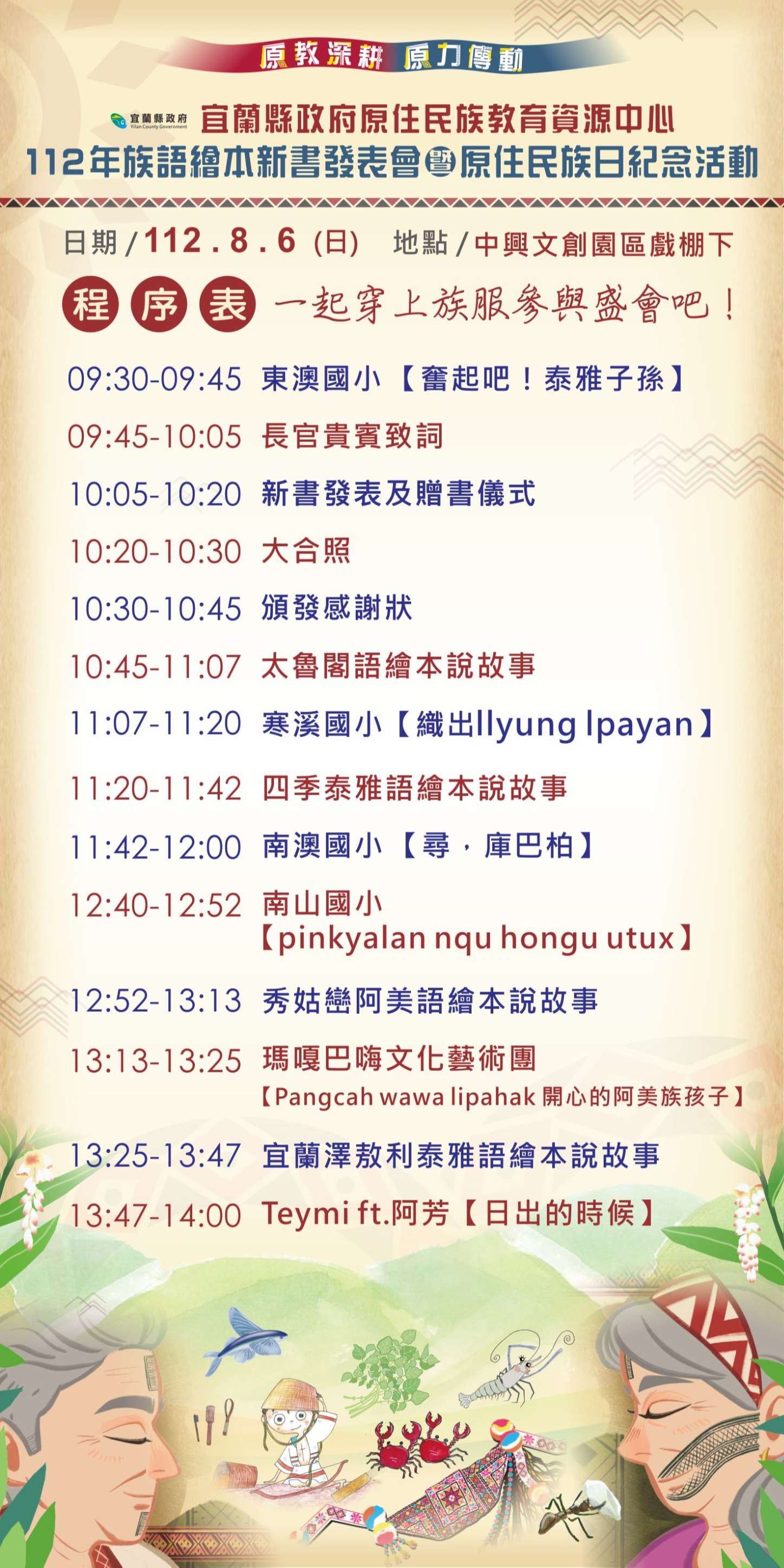 二、為推廣民族文化及發表宜蘭縣族語繪本教材,藉由族語繪本的意涵增進族語能力,以理解宜蘭縣原住民族原有之在地性傳統文化,並活絡原住民族教育,建立文化交流網絡,以實踐全民原教目標。