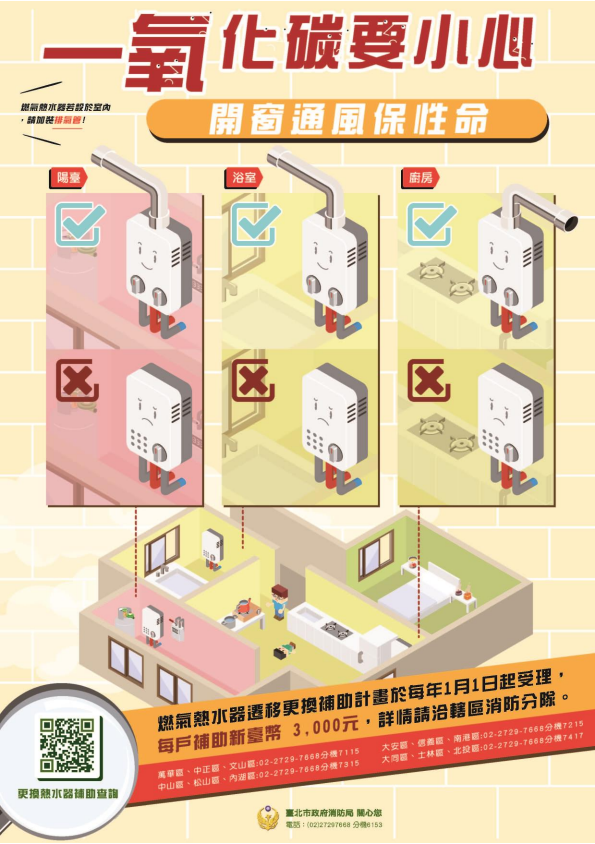 冬季將至,在家禦寒保暖的同時,仍須留意維持居家通風狀況,並定期檢修然氣熱水器,保護自己也保護家人。