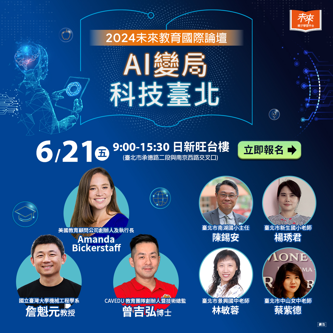 一、為因應人工智慧(AI)、STEAM教育及數位科技的迅速發 展,本局規劃辦理旨揭論壇,論壇主題將聚焦於「人工智 慧世界中的教育機會」及「AI賦能下的STEAM教育」等主 題,旨在提供親師生成式AI、STEAM教育及數位科技發展之 國內外趨勢,並透過實務案例分享,協助親師有效應對未 來科技對教育影響,旨揭活動資訊說明如下: