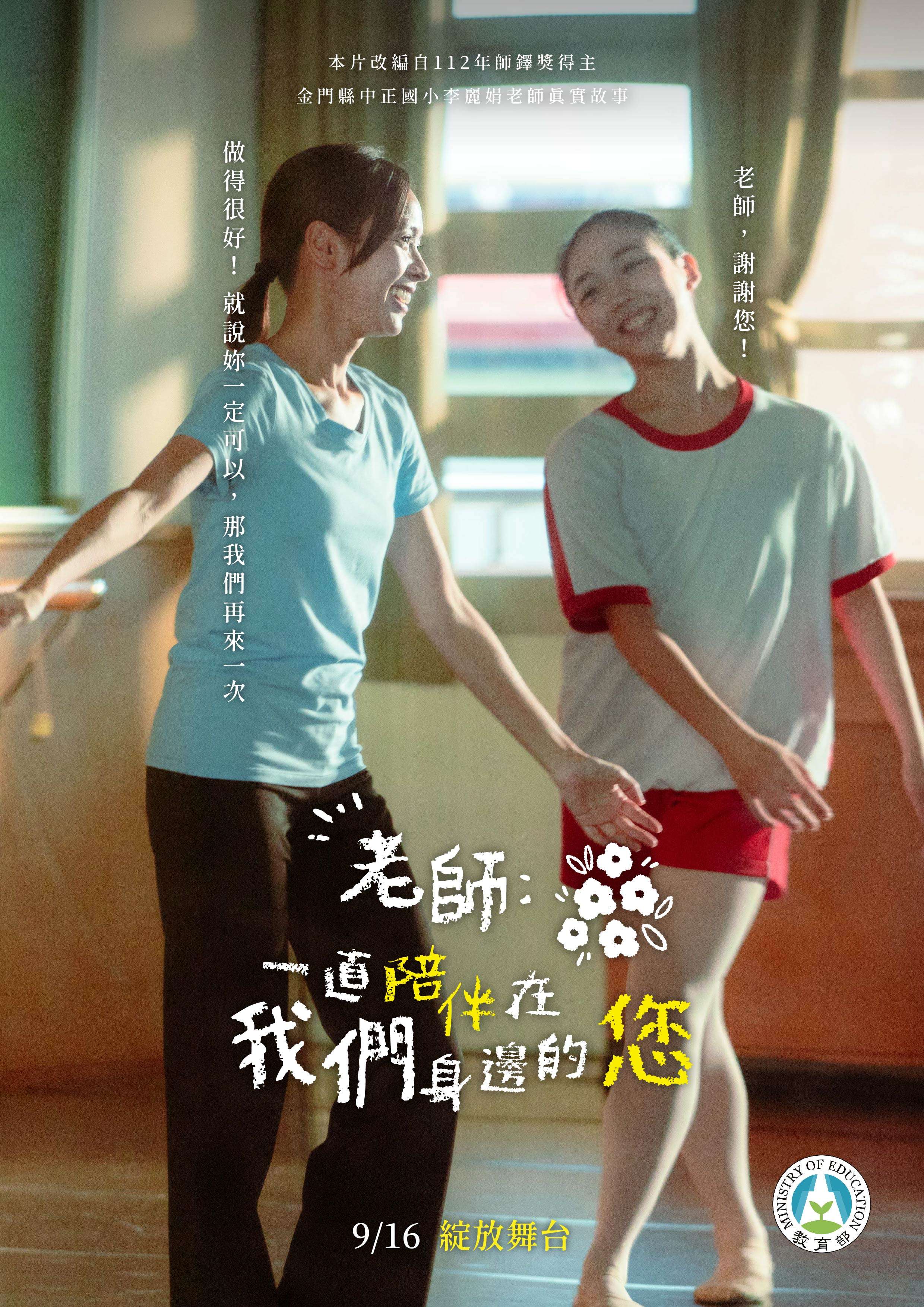 一、本片改編自師鐸獎得主金門縣中正國小李麗娟老師的經歷,透過教師與學生共同努力、成長之過程,展現教育及陪伴,帶來的改變與力量;本片由知名演員黃姵嘉領銜主演,藉由她與學生的真情演繹,傳遞了「是老師,讓不可能成為可能」的核心訊息,期許觀眾能感受到老師無條件的默默付出,體會老師的辛勞,進而向師長們表達最真摯的感謝。