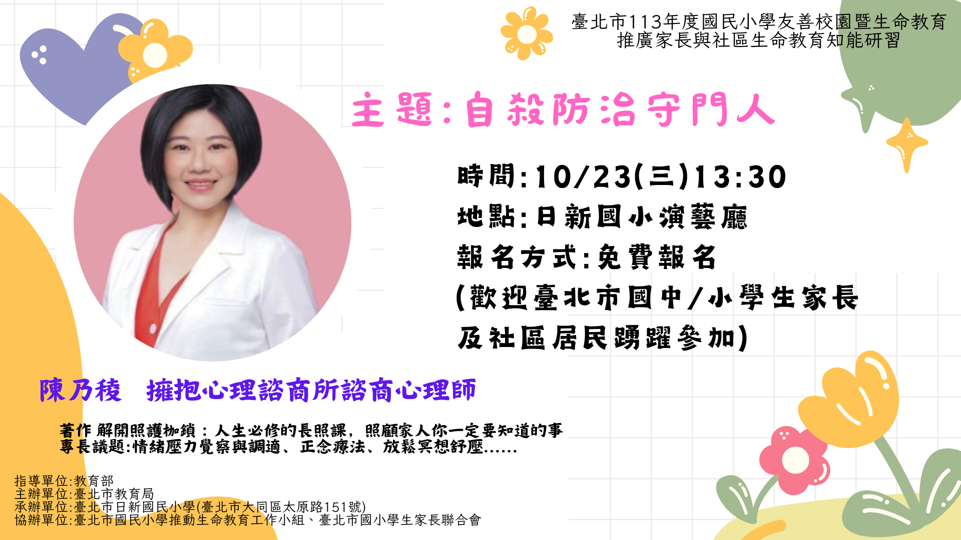 三、如對活動有任何疑問,請洽:02-25584819轉416,日新國小輔導組陳老師。
