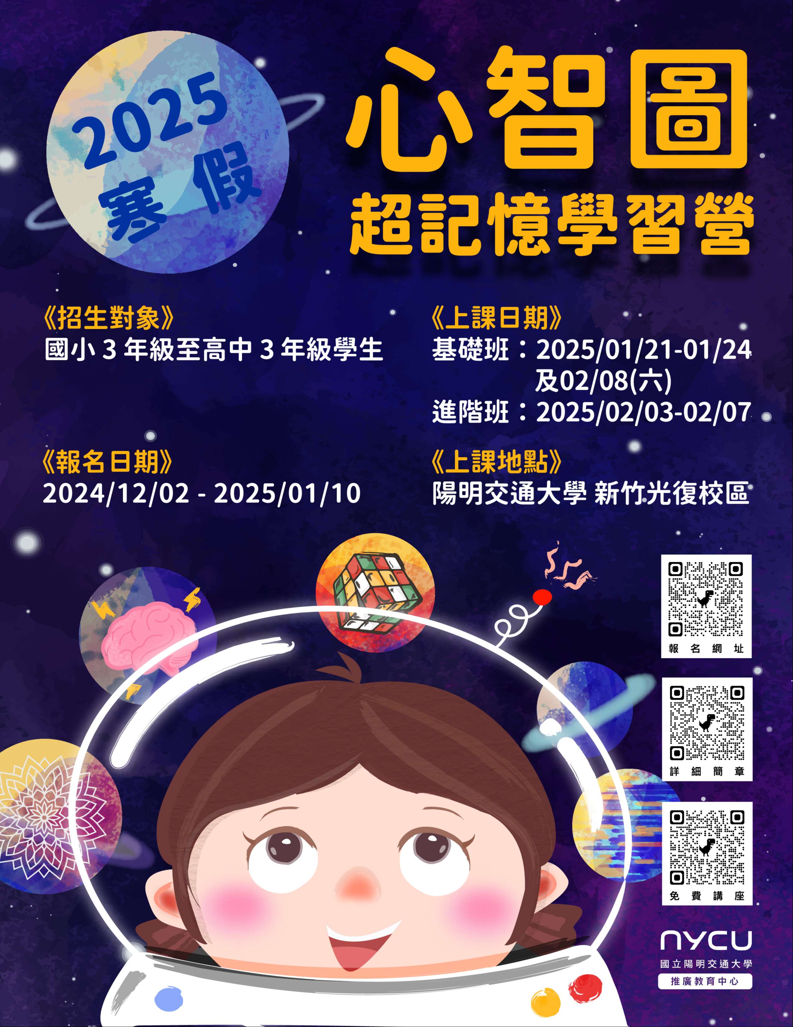 一、旨揭親子免費講座(含線上)共兩梯次,時間訂於:113年11月16日及12月29日;營隊課程時間訂於114年1月21日至2月8日止。詳細課程資訊與報名繳費請至該校推廣教育中心網站:https://cec.nycu.edu.tw/Category/3查詢。