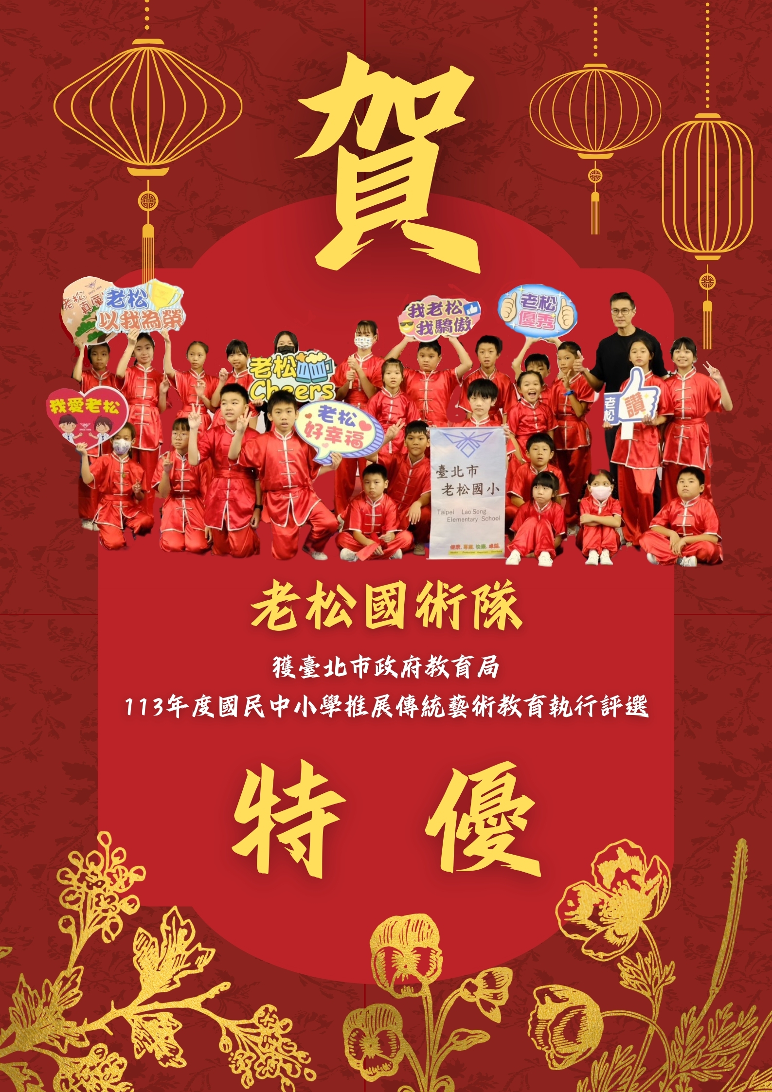 賀!本校老松國術隊獲臺北市政府教育局113年度國民中小學推展傳統藝術執行評選特優,